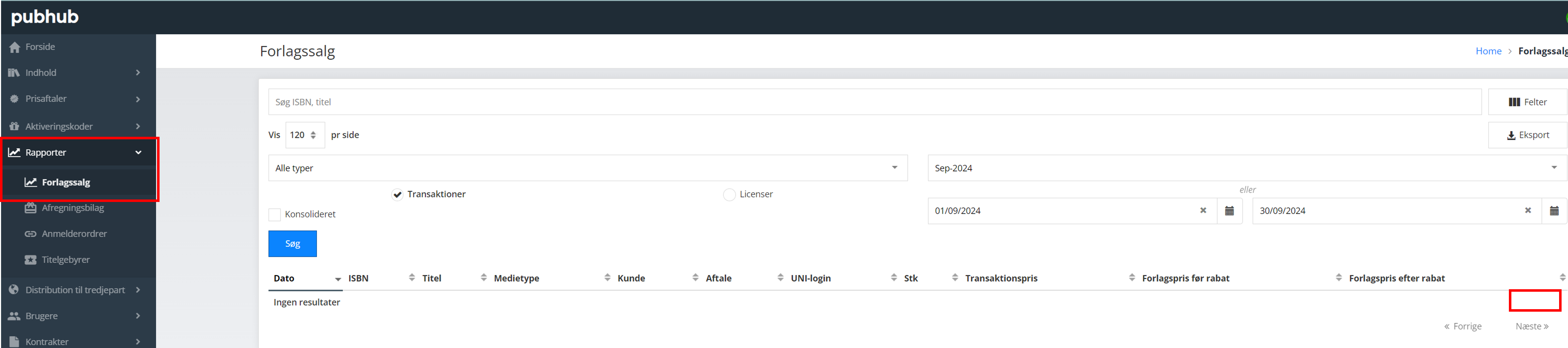 Beløbet nederst i forlagets salgsrapport viser derfor den korrekte samlede sum af salg/udlån for den valgte måned.