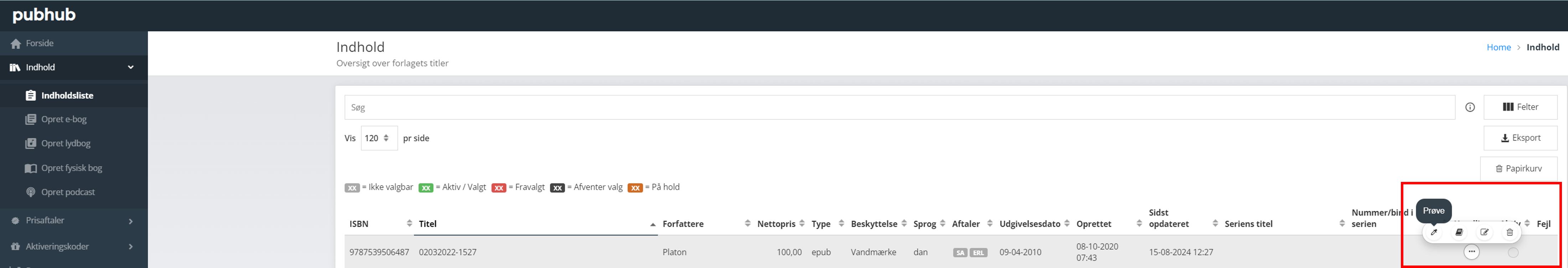 - I Pubhub gå til "Indholdslisten" - "Indhold."